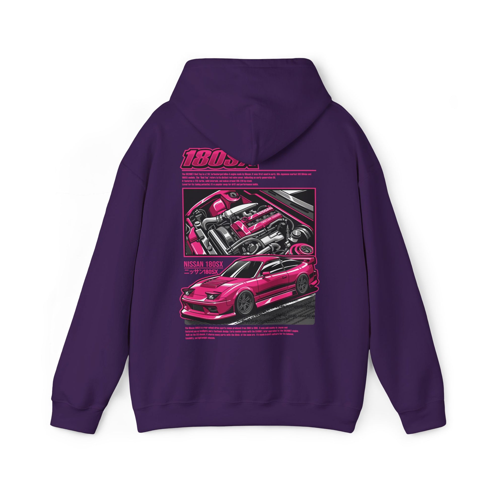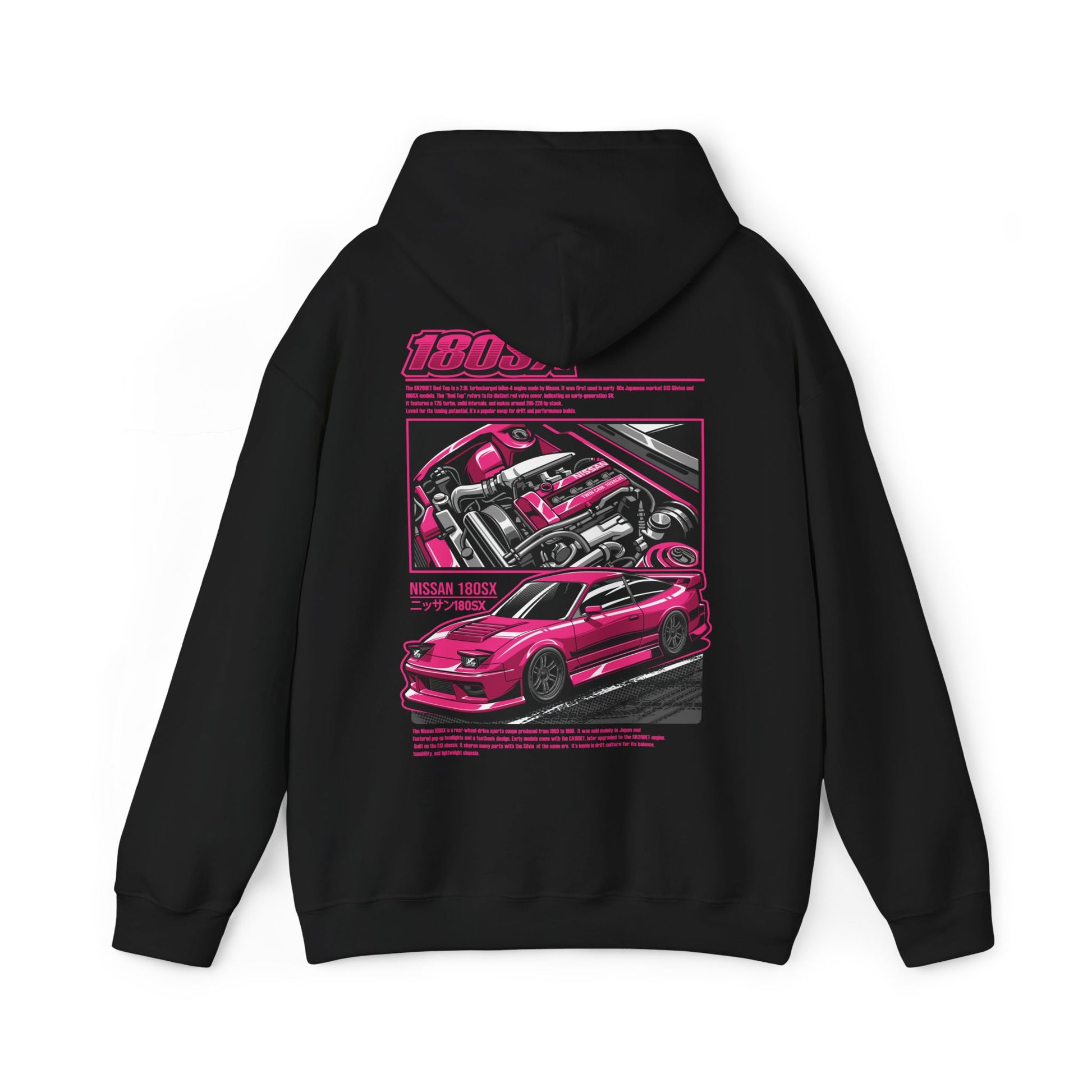 Stand out in style with the Pink Nissan 180SX SR20DET Hoodie. Celebrating the legendary 180SX and its iconic SR20DET engine, this hoodie brings a bold, eye-catching pink design to one of drifting’s most beloved cars. Perfect for meets, track days, or everyday wear, it’s built for JDM fans who want to rep their passion with confidence.