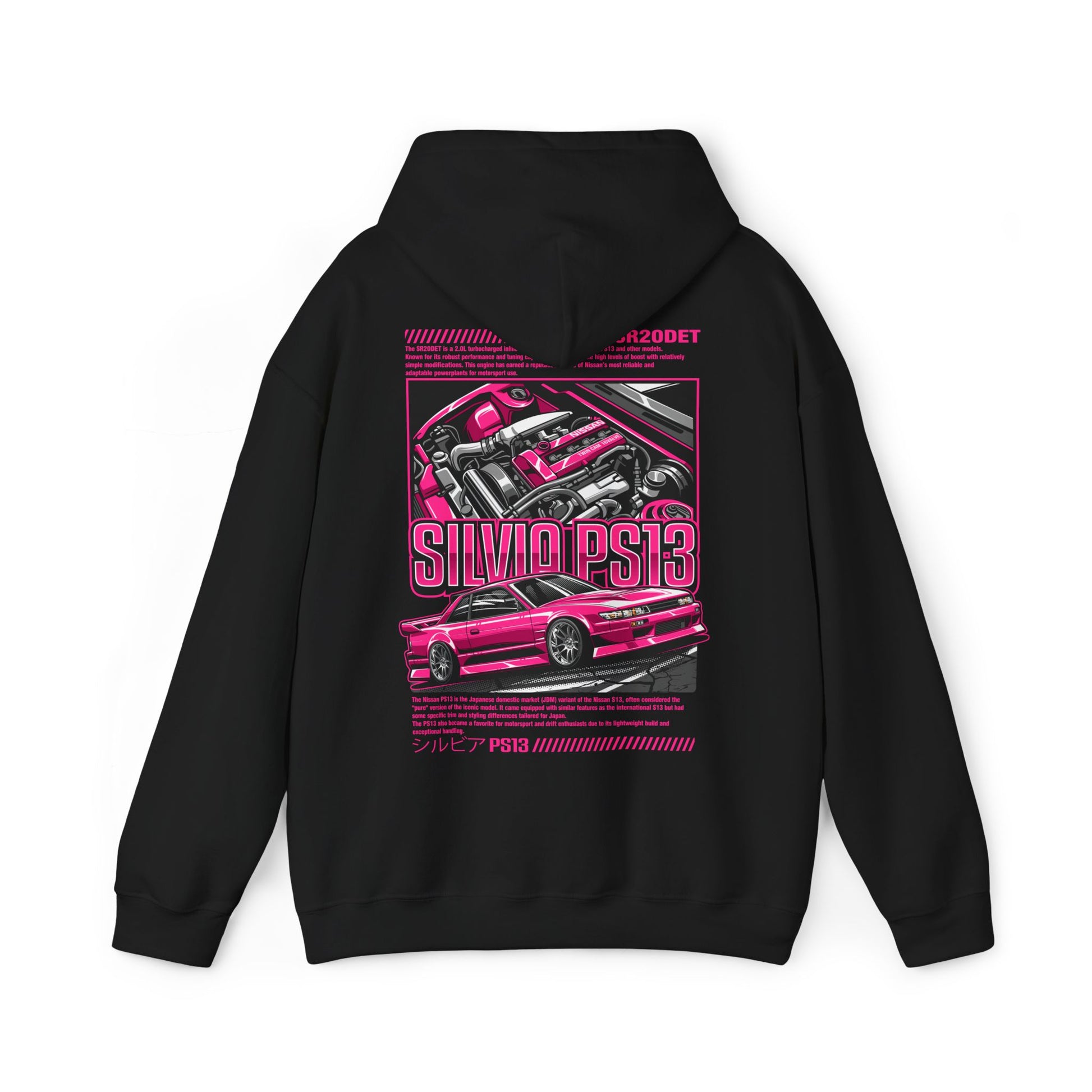 Stand out from the crowd with the Pink Nissan Silvia PS13 SR20DET Hoodie. Featuring the iconic PS13 chassis paired with the legendary SR20DET engine, this hoodie celebrates one of the most beloved drift cars in bold, eye-catching style. Perfect for drift meets, garage nights, or everyday streetwear, it delivers the ultimate mix of comfort, durability, and car culture attitude.