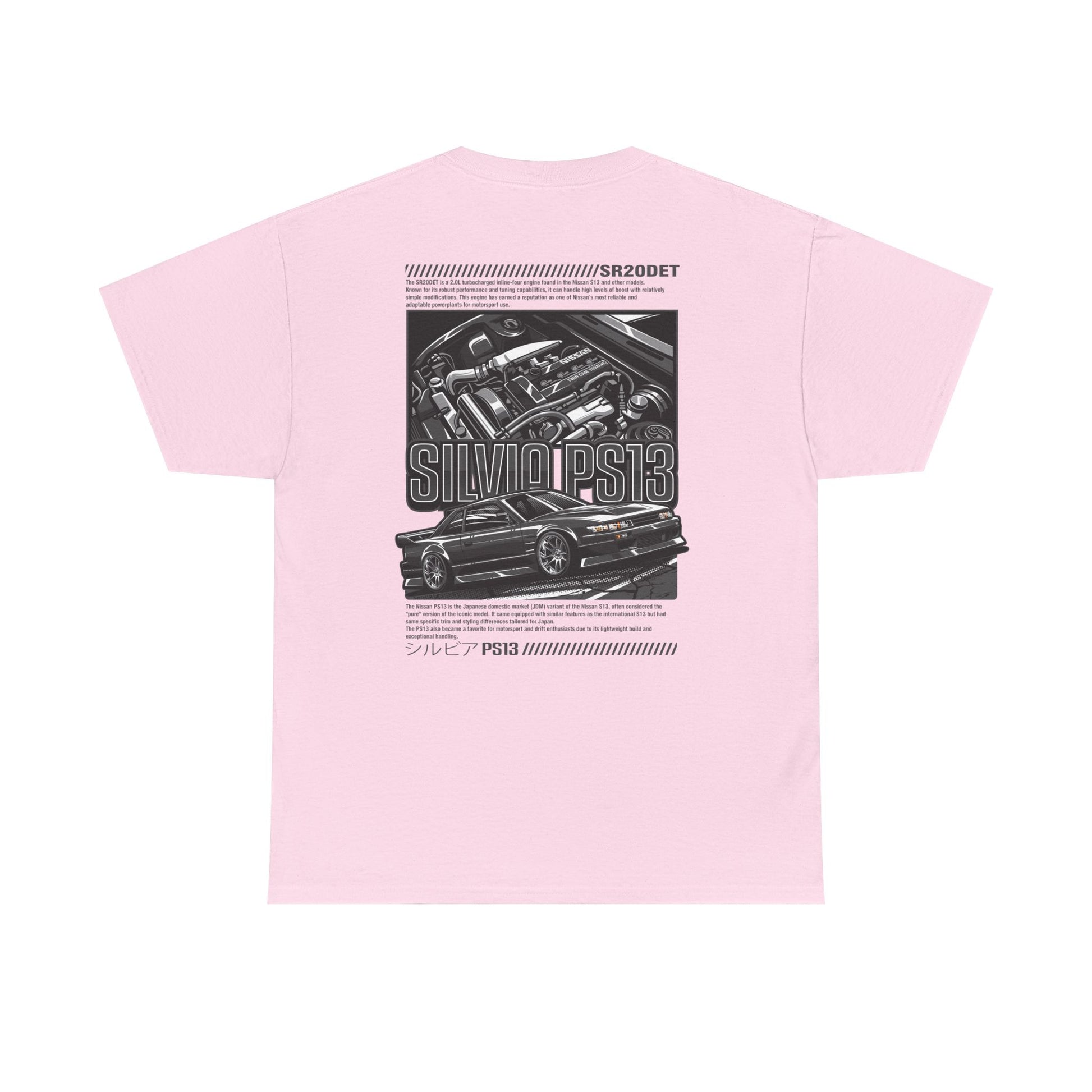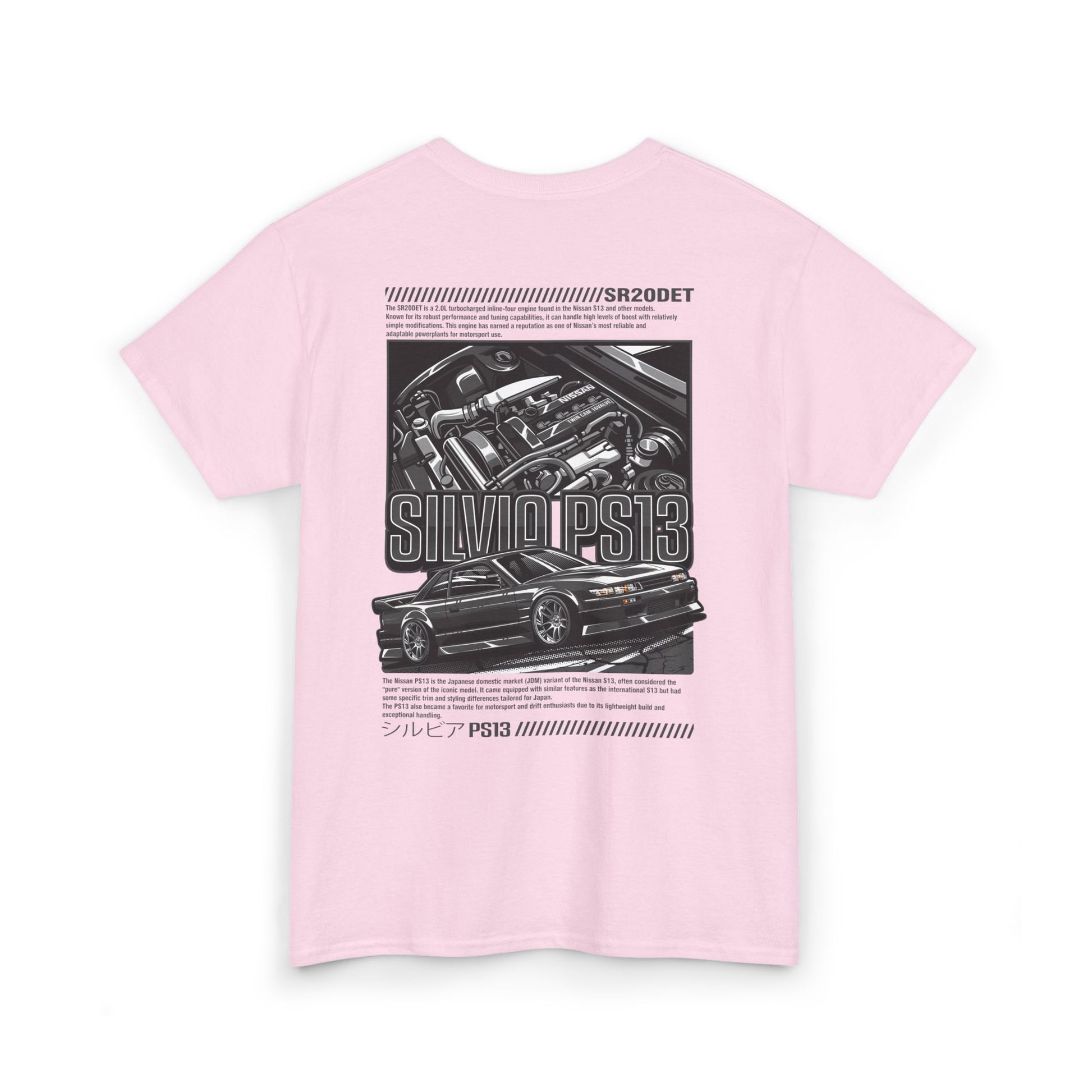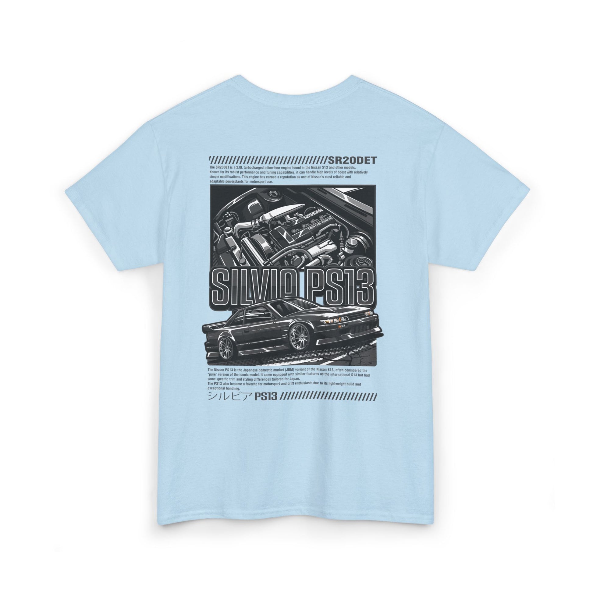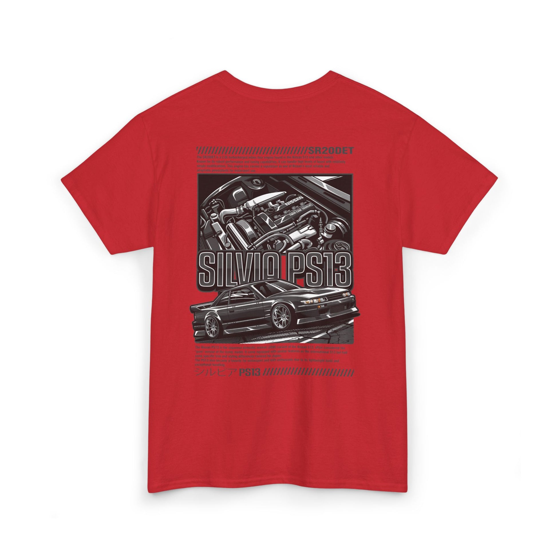 Show your style with this PS13 SR20DET T-Shirt – Charcoal Grey Edition, featuring a clean Nissan Silvia PS13 design paired with a detailed SR20DET turbo engine illustration in sleek grey tones. This understated yet bold look captures the essence of Japanese drift culture, making it perfect for car meets, motorsport events, or everyday streetwear.
